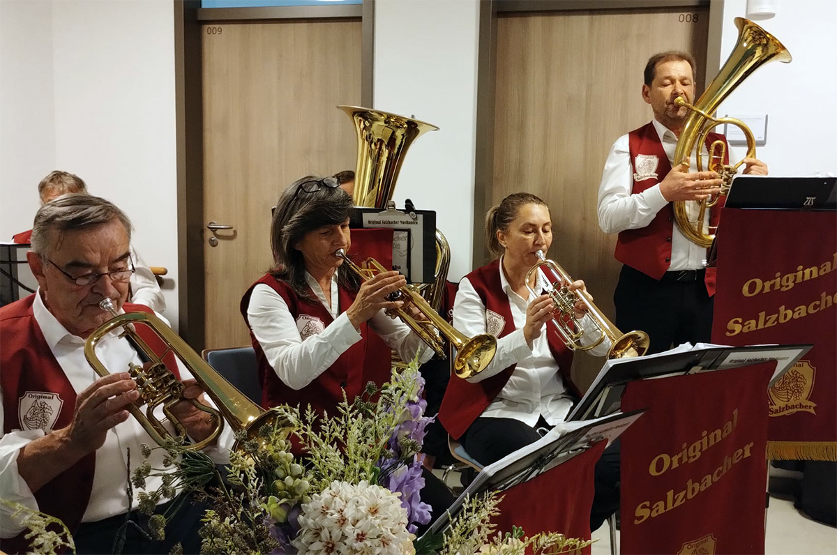 Der Original Salzbacher Bläserkreis erfüllte das Haus mit Musik und verabschiedete sich mit dem traditionellen Steigerlied.